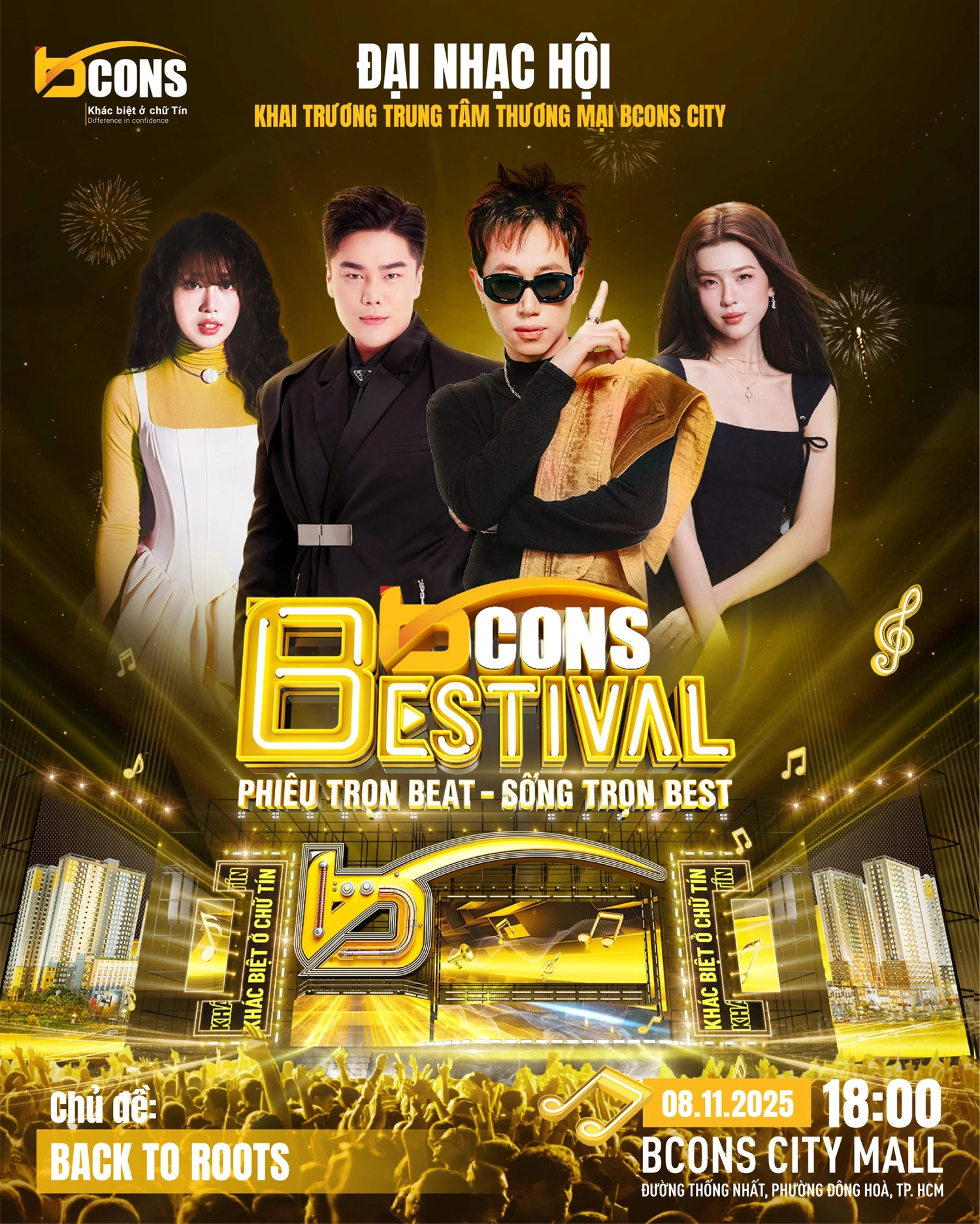 BCONS BESTIVAL 2025 chính thức khởi động – chuỗi sự kiện âm nhạc và lễ hội đặc sắc, đánh dấu Tuần lễ khai trương Trung tâm Thương mại Bcons City tại Khu đô thị Bcons City, TP. Dĩ An, Bình Dương.